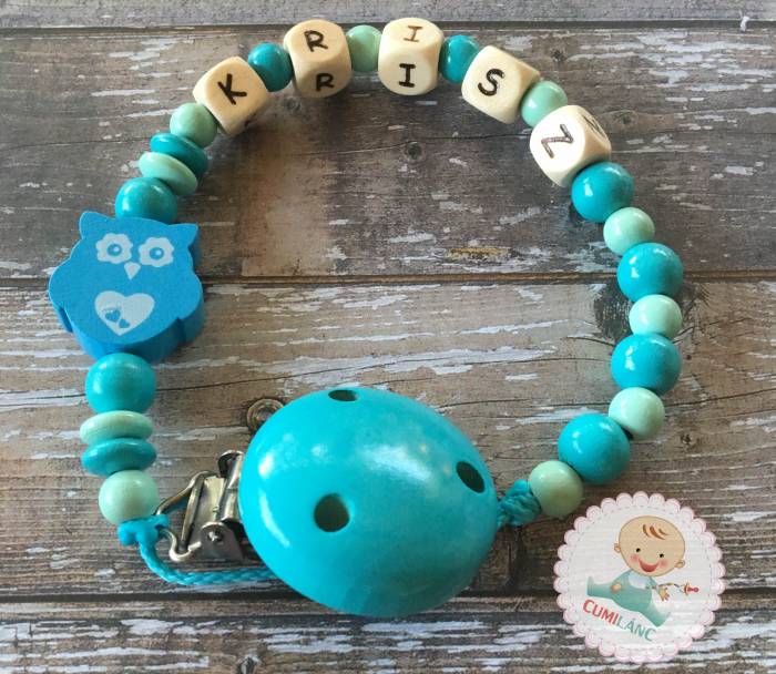 Cumilánc minden kiegészítője bababarát, fa alapanyagú termék, káros anyagoktól mentesek, kimondottak erre a célra készültek. A cumilánc hossza 22 cm, csat nélkül.