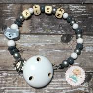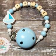 Klipsz: biolakkal kezelt, színtartó, izzadás és nyálálló fa rögzítő csatt. A szellőző lyukak segítségével nem okoz fulladást. A csat fém része nikkelmentes, rozsdamentes acélból készült.